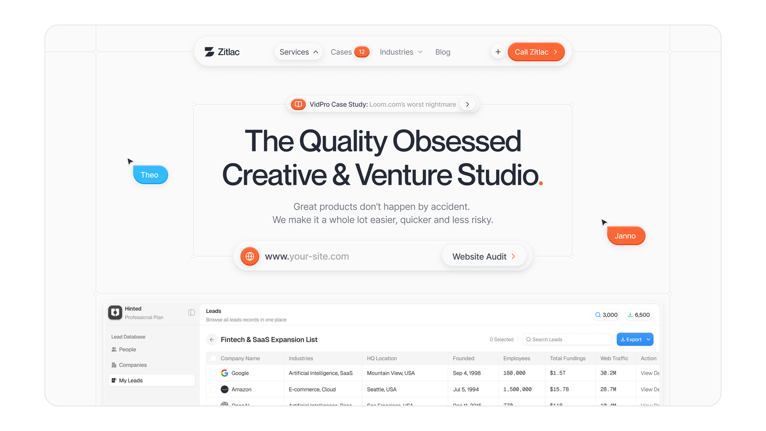 We turn ideas into companies. Design, code, distribution. All in-house.